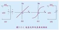 若電容元件的庫伏特性為一條通過坐標原點的直線,如圖5-5-1(b)所示,則稱為線性電容元件。線性電容元件的電容C為一常量,與電壓u和電流i無關,其電路符號如圖5-5-1(a)所示。 若電容元件的庫伏特性為一條通過坐標原點某種形狀的曲線,如圖5-5-1(c)所示,則稱為非線性電容元件。非線性電容元件的電容C不為一常量,與電壓u和電流i有關,其電路符號如圖5-5-1(d)所示。