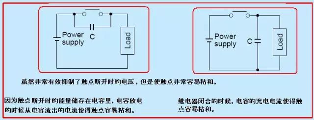 常見的直流大的負荷直流電動機,直流離合器和直流電磁閥,這些感性負載開關關閉,數百甚至幾千伏的反電動勢造成的浪涌會把觸點壽命降低甚至徹底損壞。當然如果電流較小,比如在1A附近的時候,反電動勢會造成電弧放電,放電會導致金屬氧化物污染觸點,導致觸點失效,接觸電阻變大。