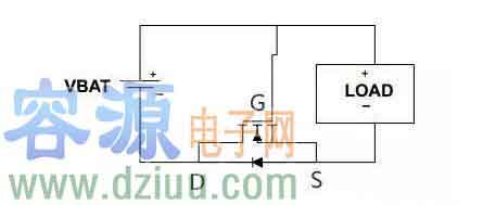 正確連接時:剛上電,MOS管的寄生二極管導通,電源與負載形成回路,所以S極電位就是VBAT-0.6V,而G極電位是0V,PMOS管導通,從D流向S的電流把二極管短路。