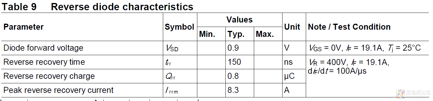高速下,二極管也不是理想的,二極管導通后,PN節中充滿了電子和空穴,當瞬間反向加電的時候,需要時間恢復截止,這個類似一扇門打開了,需要時間關上,但在高速下,這個關上的時間太長,就會導致H橋上下管子導通而燒壞。所以在高速應用中,直接因為MOS管工藝寄生的二極管的反向恢復時間太長,所以需要用特殊的工藝制作實現高速的內置二極管,但哪怕特殊工藝制作的,其性能也達不到獨立的高速二極管性能,只是比原MOS管寄生的指標強一些而已,但已經滿足大部分軟開關的需求了,500KHz下沒問題。比如Infineon的C6系列,后綴帶CFD的管子,內部的二極管就是高速的。
