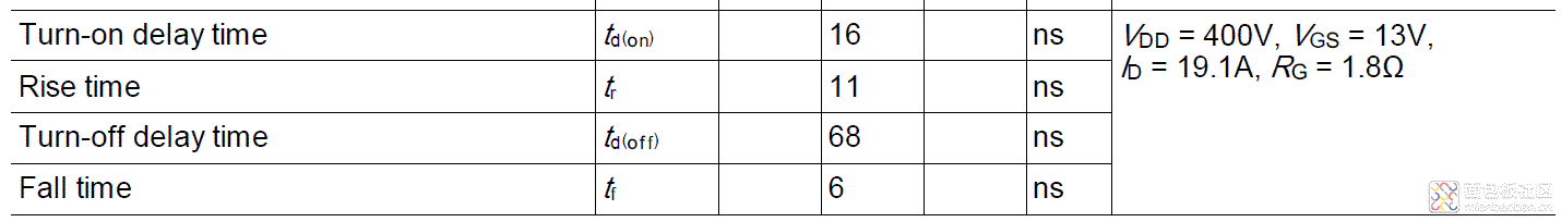 上圖四項指標,第一項是導通延時時間,第二項是上升時間,第三項是關閉延時時間,第四項是下降時間。定義如下圖: