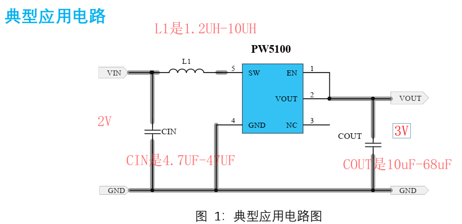 PW5100輸入電壓范圍0.7V-5V,輸出固定電壓:3V,3.3V,5V,效率最高95%,低功耗10Ua,芯片開關電路1.5A,封裝SOT23-5,電感采用1uh-10uh。