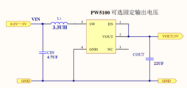 PW5100是輸入電壓0.7V-5V,可以滿足2V升3V輸出0.5A的設計要求。外圍最少,功耗最低10uA