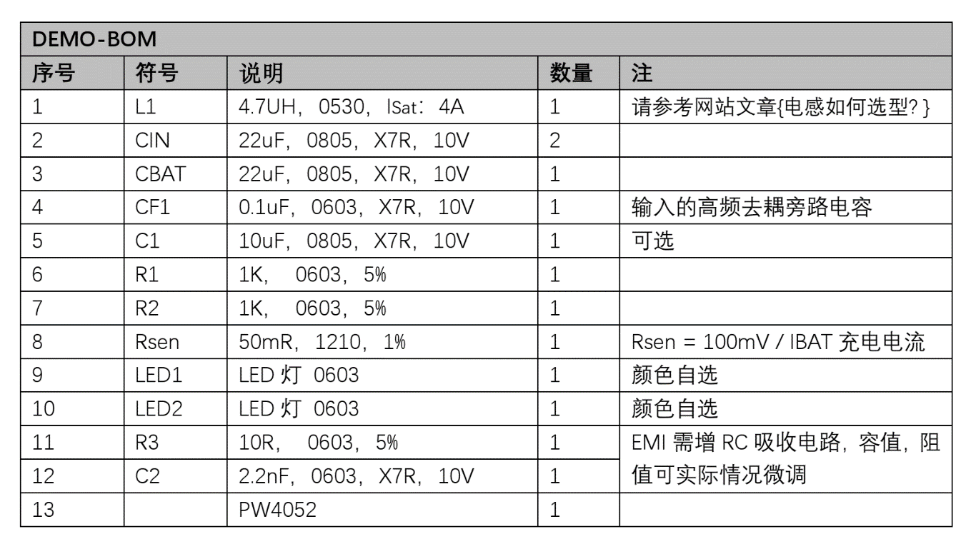 SLM6500充電板子所需的物料表,可直接導(dǎo)用PW4052的DEMO物料表。