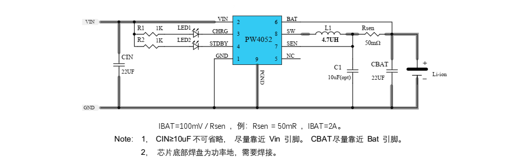 PW4052 內置防倒灌功能,不需要額外的外部二極管; PW4052 還設計有欠壓保護、芯片過溫保護等保護功
