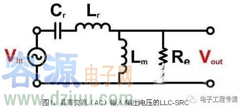 Mg/Qe和Mg/fn圖表中的增益曲線是由圖1所示的LLC諧振槽路(它也是LLC諧振半橋轉換器的線性化電路)衍生而來的。