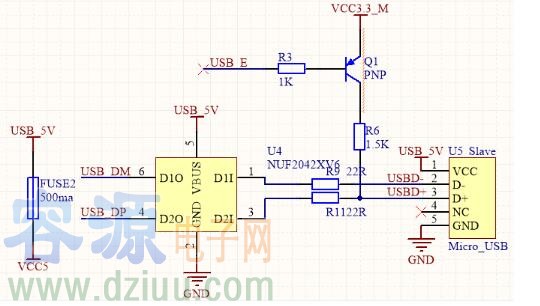 1、Vcc腳會與主機的5v電源接通。子機這邊可以懸空,也可以做供電,還可以做連接識別(電阻分壓之后高即為連接主機)。
