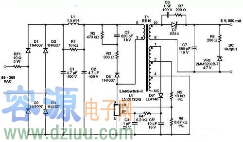 該設(shè)計采用了Power Integrations的LinkSwitch系列產(chǎn)品LNK613DG。這種設(shè)計非常適合手機(jī)或類似的USB充電器應(yīng)用,包括手機(jī)電池充電器、USB 充電器或任何有恒壓/恒流特性要求的應(yīng)用。