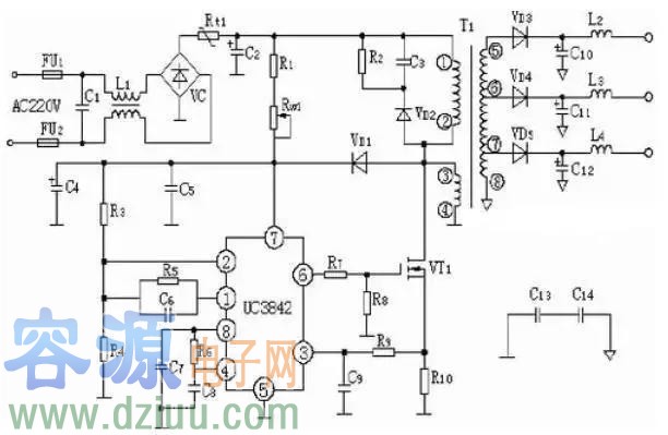UC3842是一種性能優(yōu)異、應(yīng)用廣泛、結(jié)構(gòu)較簡單的PWM開關(guān)電源集成控制器,由于它只有一個輸出端,所以主要用于音端控制的開關(guān)電源。
