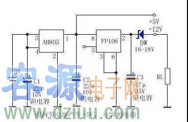 從圖中可以看出,只要改變穩(wěn)壓管的穩(wěn)壓值,即可獲得不同的輸出電壓,使用十分靈活。FP106的第⑤腳為控制電源關(guān)閉端,在關(guān)閉電源時,耗電幾乎為零,當(dāng)?shù)冖菽_加高電平》2.5V時,電源導(dǎo)通;當(dāng)?shù)冖菽_加低電平<0.4V時,電源被關(guān)閉。可以用電路來控制或手動控制,若不需控制時,第⑤腳與第 ⑧腳連接。