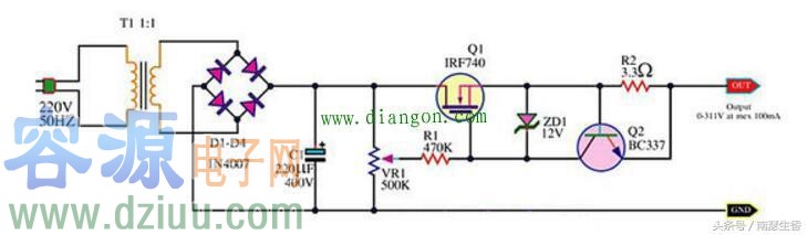 串聯穩壓電源電路和典型應用電路圖(圖文)