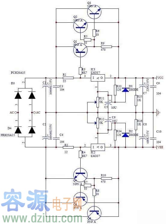 關鍵詞:三端穩壓電路音頻放大器電路圖 所屬欄目:音頻功放電路