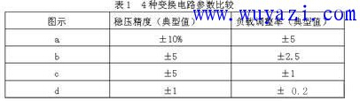 分析:(a)將偏置線圈通過限流電阻直接作為TOPSwitchⅡ控制極的輸入;(b)在(a)的基礎上增加了穩壓管,是(a)的增強型;(c)中輸出電壓通過光耦作用于TOPSwitchⅡ控制極,在輸出電壓反饋精度上有所提高;(d)在(c)基礎上增加了精密基準TL431,使得輸出穩壓精度和負載調整率都能獲得較高的精度。4種變換電路的效果如表所示: