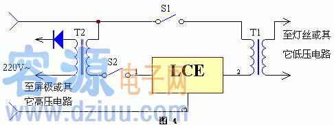 該裝置的應(yīng)用電路工作原理見下圖。在一些由真空管組成的電子設(shè)備或其它某種設(shè)備中,對(duì)于幾種電源電壓,如高壓、低壓需按一定的順序啟動(dòng)。如果一時(shí)疏忽,可能會(huì)誤操作。而利用LCE模塊則可以使這個(gè)問題迎刃而解。T1是低壓變壓器,它的初級(jí)線圈串聯(lián)在LCE的②腳中;T2是高壓變壓器,這的初級(jí)線圈串聯(lián)在LCE的①腳中。正常啟動(dòng)的順序應(yīng)是:先按下開關(guān)S1,過一會(huì)兒,讓真空管的燈絲預(yù)熱后,再按動(dòng)開關(guān)S2。如果其操作順序相反,先按動(dòng)開關(guān)S2,其電路是不會(huì)工作的,這樣就能確保操作程序的正確性。