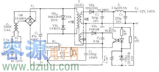 開關(guān)電源TOP261電路圖(筆記本適配器電路)