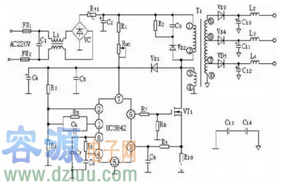 UC3842開關(guān)電源電路圖