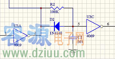 這個電路要求在IN端輸入的是邊緣陡峭的方波脈沖,因此控制信號從單片機(jī)或者其他開路輸出的設(shè)備接入后,要經(jīng)過施密特觸發(fā)器(比如555)或者推挽輸出的高速比較器才能接到IN端。如果輸入邊緣過緩,二極管延時電路也就失去了作用。