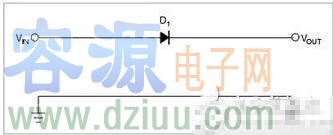 圖1 一只串聯二極管保護系統不受反向極性影響,二極管有0.7V的壓降