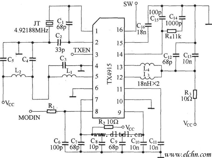 由TX4915組成的遙控發(fā)射電路
