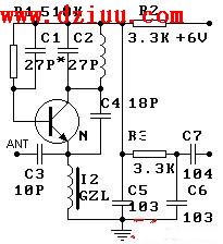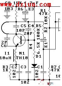 高頻振蕩器采用電容三點式振蕩器,振蕩頻率和接收頻率相一致.而間歇振蕩又是在高頻振蕩的過程中產生的,反過來又控制著高頻振蕩器的振蕩和間歇,間歇振蕩的頻率是由電路的參數決定的,
