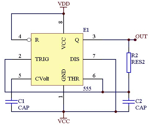 有差別,但在產(chǎn)品中都保留了555數(shù)字,即片內(nèi)的兩個電壓比較器的基準(zhǔn)電壓由三個嚴(yán)格相等的5k歐電阻分壓提供,