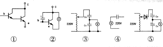 且只需估測(cè)電容容量,則可按圖4接線,讓被測(cè)電容與萬用表某一表筆串接后,將萬用表撥到電壓擋(250V)測(cè)交流電壓,如此用多個(gè)已知電容測(cè)試,記住表針擺動(dòng)幅度,這樣可為以后估測(cè)電容提供依據(jù)(注:此法只限非極性電容)。 方法4:電解電容的測(cè)量。因電解電容存在極性問題,可照?qǐng)D5接一個(gè)半波整流二極管,根據(jù)被測(cè)電容的耐壓適當(dāng)選擇自耦變壓器的輸出電壓。Co為已知容量的電解電容,cx為待測(cè)電容,照?qǐng)D接線測(cè)量后,根據(jù)公式Co/Cx=U0/Uv可算出Cx容量。
