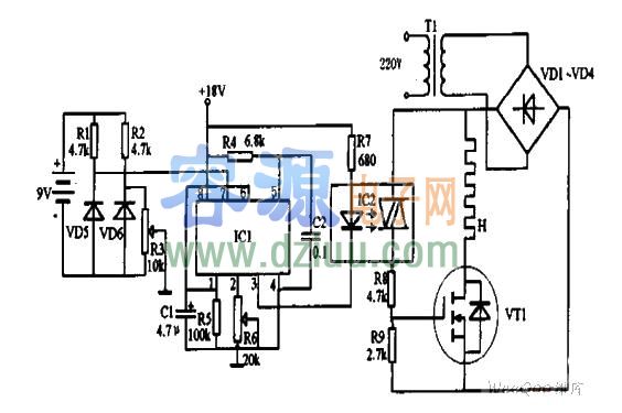 IC1為電壓/頻率轉換器選用LM331型。IC2為光耦合雙向晶閘管選用3031型。場效應管VT1選用MTP12N05型。 <<版權聲明:本文由容源電子網(www_dziuu_com)整理提供,部分內容來源于網絡,如有侵犯到你的權利請與我們聯系更正。》