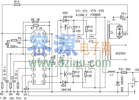 變器電路圖(CW3525A應(yīng)用電路)車載12v轉(zhuǎn)220v逆 本車載逆變器電路實(shí)際上是一個(gè)數(shù)字式準(zhǔn)正弦波DC/AC逆變器,具有以下特點(diǎn):(1)采用脈寬調(diào)制式開關(guān)電源電路,轉(zhuǎn)換效率高