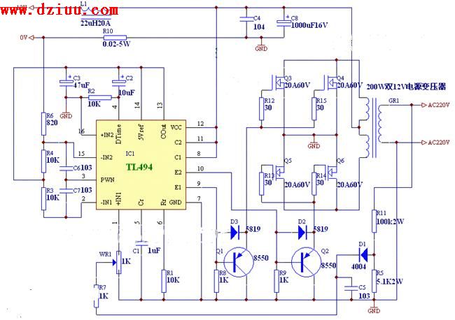 簡單自制tl494逆變器電路圖50hz輸出,大功率輸出,
