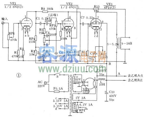 其原有的電子管座,變壓器及接線柱,安裝甚為便利。如為整潔起見,讀者也可采用印刷電路板,將電源變壓器售輸出變壓器、扼流圈,電子管及大電解電容安裝于金屬板材底座上部,將印刷電路板安裝于底座內(nèi)部,這樣可以防止阻容元件因受高溫而導(dǎo)致參考變化。 <<版權(quán)聲明:本文由容源電子網(wǎng)(www_dziuu_com)整理提供,部分內(nèi)容來源于網(wǎng)絡(luò),如有侵犯到你的權(quán)利請與我們聯(lián)系更正。》