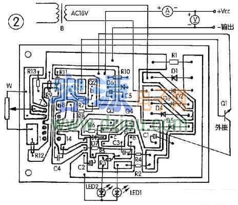 LM723、MC1723等。印刷電路見圖。 <<版權聲明:本文由容源電子網(www_dziuu_com)整理提供,部分內容來源于網絡,如有侵犯到你的權利請與我們聯系更正。》