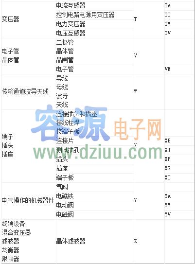 雙字母符號是由一個表示種類的單字母符號與另一字母組成,其組合型式應以單字母符號在前而另一字母在后的次序列出,如:“R”表示電阻,“RP”就表示電位器,“RT”表示熱敏電阻; <<版權聲明:本文由容源電子網(www_dziuu_com)整理提供,部分內容來源于網絡,如有侵犯到你的權利請與我們聯系更正。》