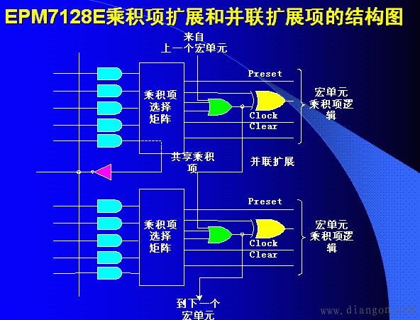 EPM7128E乘積項擴展和并聯擴展項的結構圖