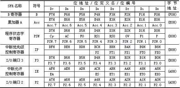 在單片機中有一些獨立的存儲單元是用來控制這些器件的,被稱之為特殊功能寄存器(SFR)。
