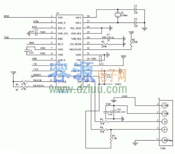 PL2303PV8651 USB轉串口原理圖 <<版權聲明:本文由容源電子網(www_dziuu_com)整理提供,部分內容來源于網絡,如有侵犯到你的權利請與我們聯系更正。》