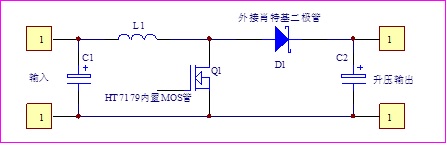 HT7179內(nèi)部集成15A的MOS開關(guān)管,外圍除了必須的電感之外,關(guān)鍵器件就是肖特基二極管。原理上是一種常見的開關(guān)直流boost升壓DC-DC電路,它通過開關(guān)管導通和關(guān)斷來控制電感容-源-電-子-網(wǎng)-為你提供技術(shù)支持