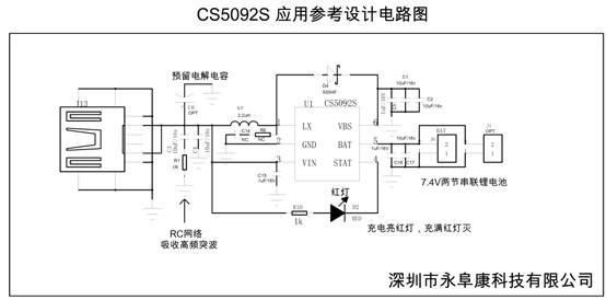 深圳市永阜康科技有限公司推出針對8.4V雙節鋰電池,推廣一顆采用SOT23-6極簡封裝、固定0.85A充電電流升壓型充電管理IC-CS5092,該芯片是現階段同類型產品中最少管腳、外圍元件最少的,非常適合應用于藍牙音響、玩具、手持打印機、無人機、電動工具等產品領域。