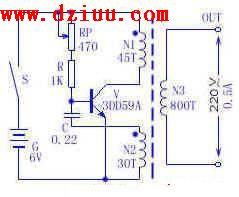 1mm厚的硬紙板制作,磁芯最好用鐵氧體U型或環型,如沒有,就用普通E型或F型硅鋼片代替,直流電流G用6V蓄電池。 <<版權聲明:本文由容源電子網(www_dziuu_com)整理提供,部分內容來源于網絡,如有侵犯到你的權利請與我們聯系更正。》