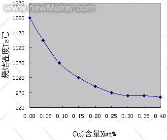 圖1 CuO對NiZnCu鐵氧體燒結溫度的影響