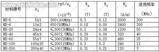 表2:常用的NiZn系鐵氧體的性能指標