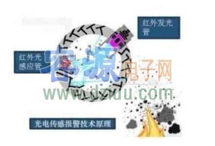 煙霧顆粒的對于紅外光的散射(類似于大氣對于太陽光的散射時四面八方的),會有一部分紅外光打到紅外光感應管上,于是感知到煙霧;