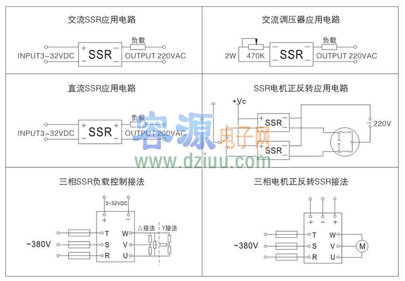 下圖為固態繼電器接線電路圖,在不同應用中接線圖:
