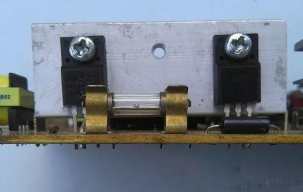 直觀沒有明顯燒焦地方,測量PFC電壓和12V輸出電壓均正常,故障應在點亮燈管高壓逆變電路,經測量發現V704 V705和供電3.15A保險管均已損壞。
