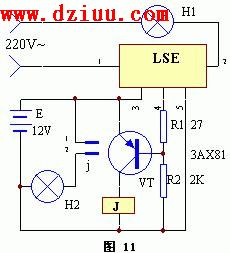 該裝置的電路工作原理見圖11。停電是經常性的事情,但有的場合則不允許停電(如正在進行手術等)。用LSE設計的電路簡單,實現全自動化。 <<版權聲明:本文由容源電子網(www_dziuu_com)整理提供,部分內容來源于網絡,如有侵犯到你的權利請與我們聯系更正。》