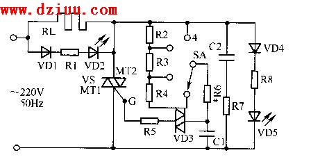 C1兩端交流電壓通過雙向觸發二極管VD3去觸發雙向晶閘管VS導通、并改變了VS的導通角,使負載RL兩端交流電壓隨之發生變化。 <<版權聲明:本文由容源電子網(www_dziuu_com)整理提供,部分內容來源于網絡,如有侵犯到你的權利請與我們聯系更正。》