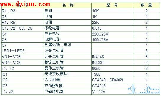 該裝置發射/接收部分改用T966/T988多路無線發收模塊。發射部分采用T966兩鍵式發射器成品,接收部分工作原理見圖1。 《版權聲明:本文由www.6600560.cn整理提供,部分內容來源于網絡,如有侵犯到你的權利請與我們聯系更正。》