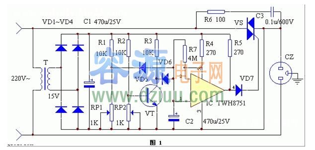 R7和C2構成了斷電延時啟動電路。 <<版權聲明:本文由容源電子網(www_dziuu_com)整理提供,部分內容來源于網絡,如有侵犯到你的權利請與我們聯系更正!