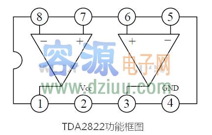 TDA2822引腳功能說明: <<容源電子網論壇正式上線,為朋友們建立一個友好互動交流平臺,歡迎大家去論壇和朋友們一起分享、學習電子技術。對本文有什么疑問請直接到論壇相應欄目發貼求助。