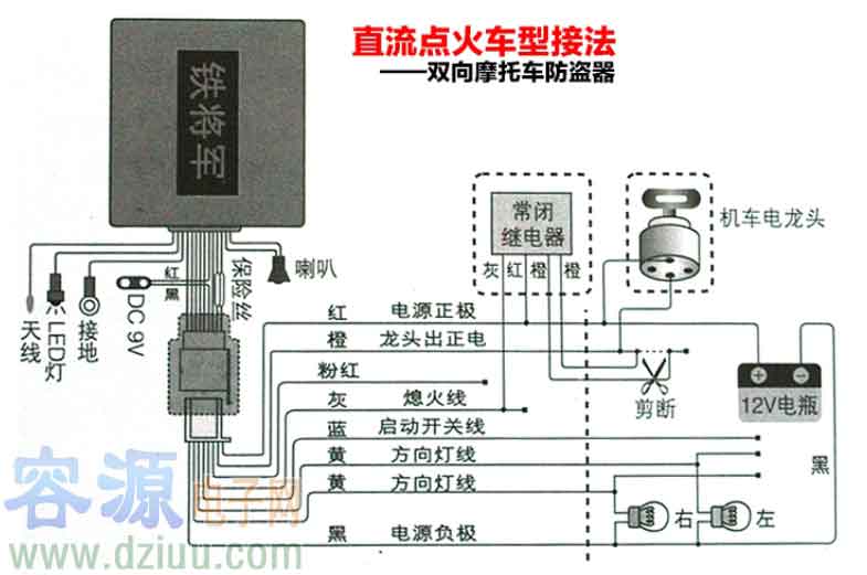 新款鐵將軍摩托車防盜器接線圖.