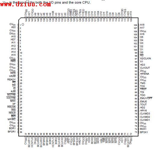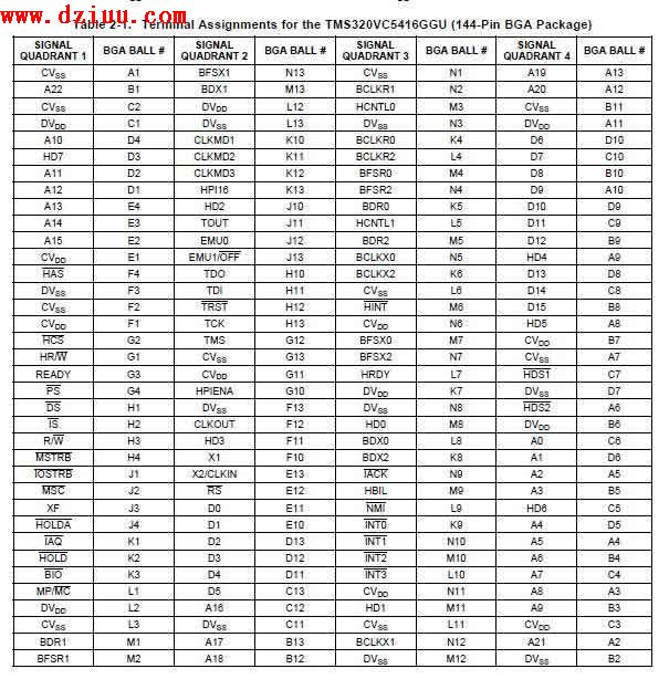 TMS320VC5416的GGU包端子分配圖: